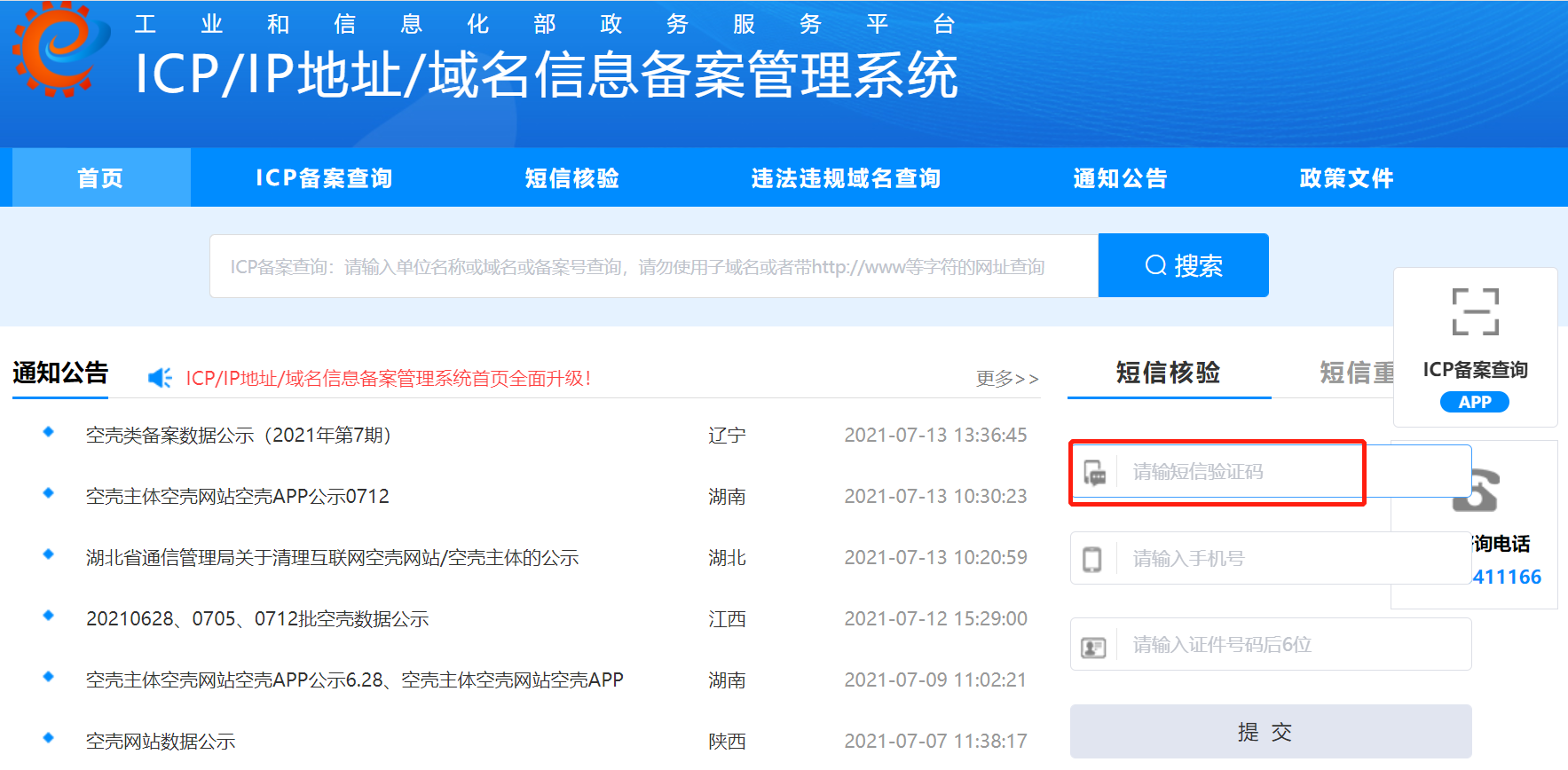 按要求填写验证码,手机号码及证件号后6位。企业网站填写法人身份证号后6位,个人网站填写个人身份证号后6位。完成短信核验后等待工信部的审核,审核需要20个工作日,不同地区时间略有不同,正常情况下两周即可下备案号,联系人手机会收到上图中的第二条短信,备案号下来后就可以开始搭建网站啦。